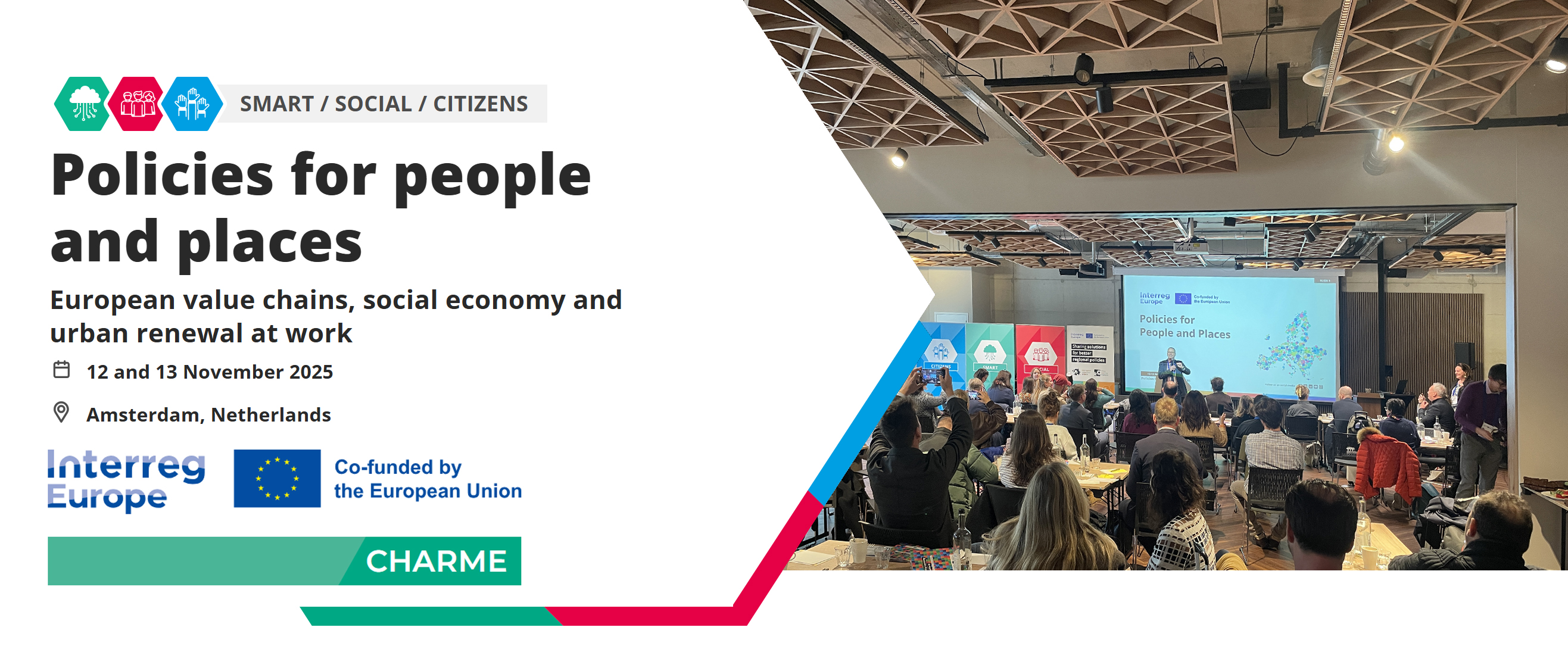 Between 12/13 November 2025, the Policies for People and Places event was held in Amsterdam (Netherlands), organised by the Interreg Europe programme’s policy learning platform. The event offers three thematic workshops – European Value Chains, Social Economy and Urban Regeneration – with the aim of exploring how local and regional policies can contribute to more resilient, inclusive and sustainable territories.